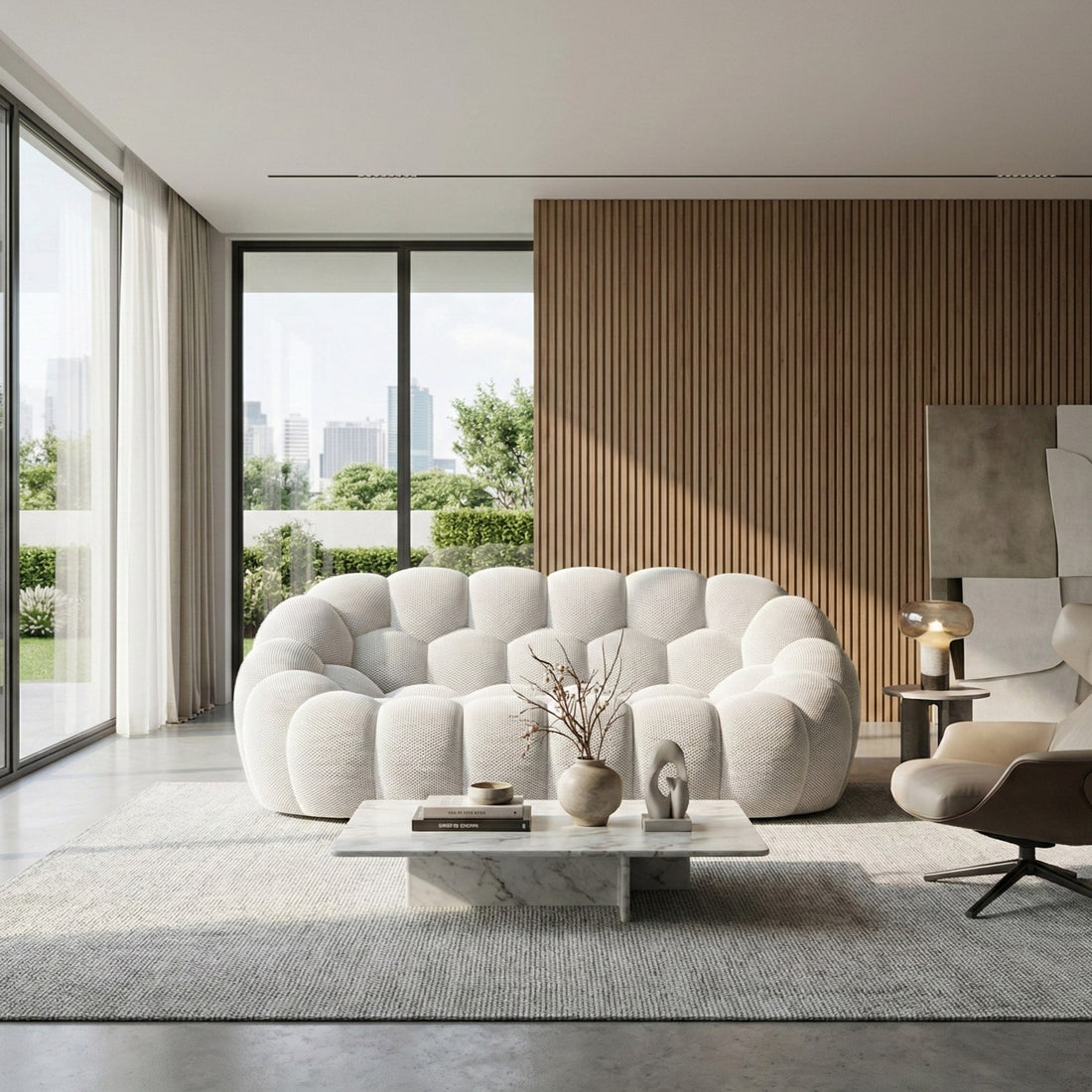 Le pouf bubble apporte une touche de design sculptural et de confort absolu à votre intérieur. Ce complément idéal de notre collection s'intègre harmonieusement dans tous les espaces, offrant polyvalence et élégance grâce à sa technologie de livraison compressée exclusive.