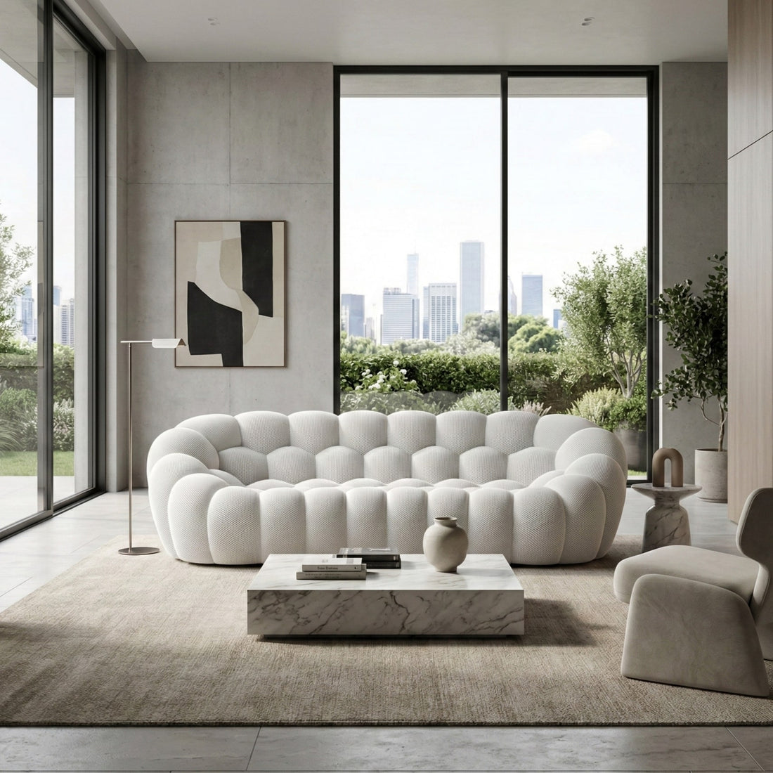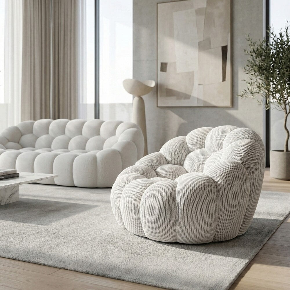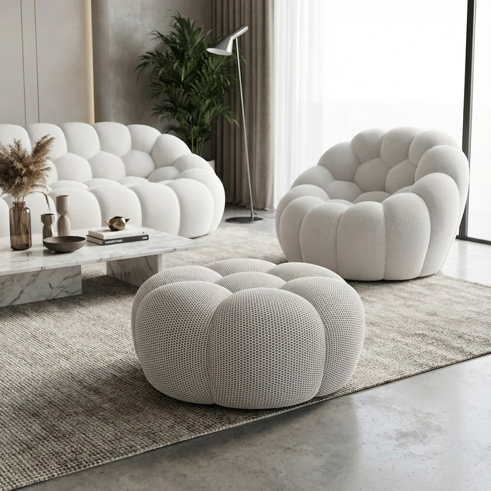 Les courbes généreuses et les volumes ronds caractérisent l'esthétique unique de notre pouf bubble. Chaque galbe est pensé pour créer une silhouette enveloppante qui attire le regard et invite à la détente. Cette allure contemporaine en fait bien plus qu'un simple accessoire : un véritable accent déco qui transforme votre espace de vie en galerie de design.